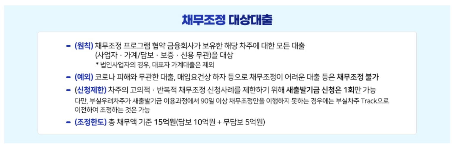 - 대상 채무: 사업자 금융 약정, 자산 매입 등 사업과 관련된 가계 금융 약정