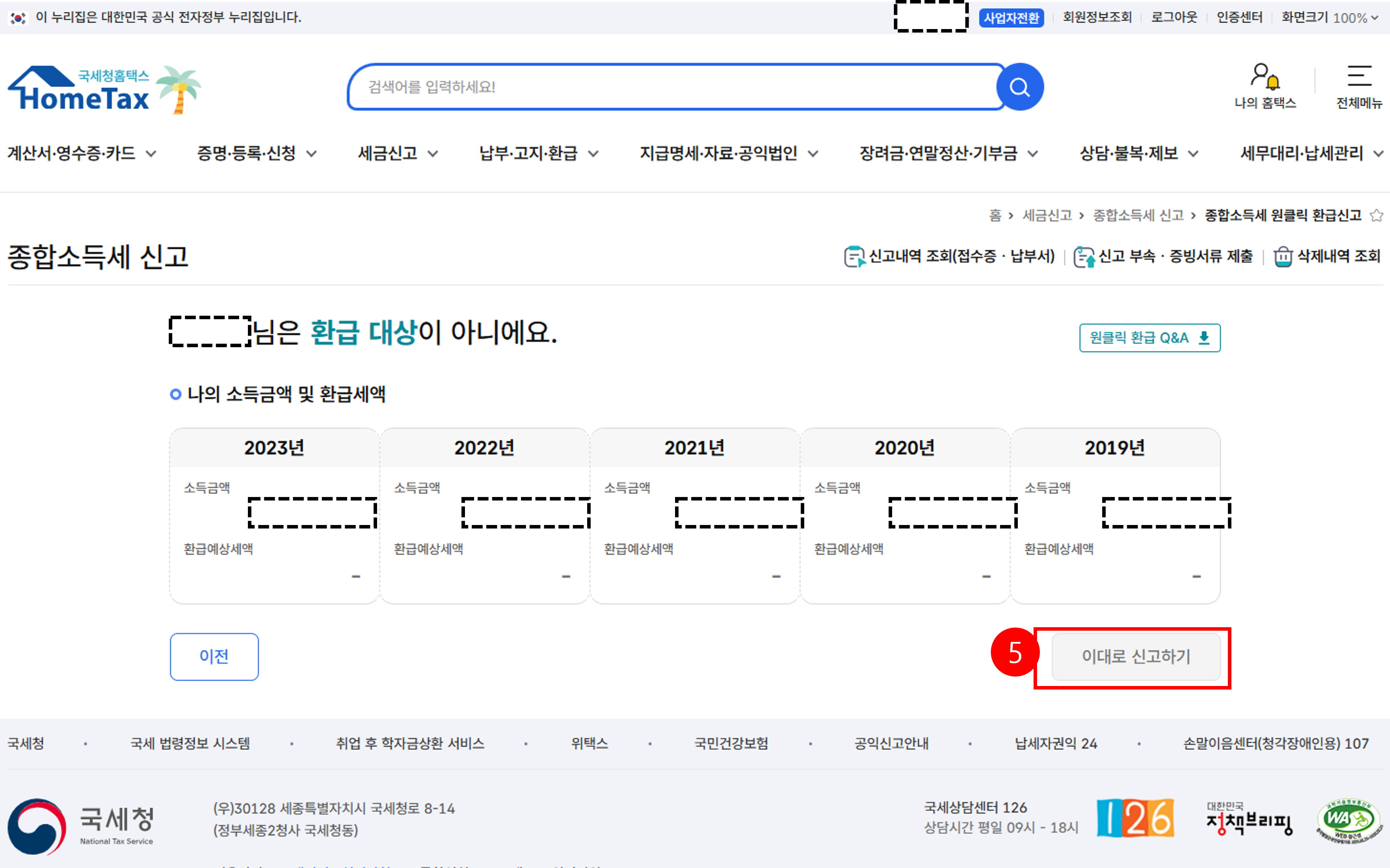 국세청 원클릭 환급 시스템을 통해 지금 당장 5년 치의 세금 환급금을 돌려받을 수 있습니다.