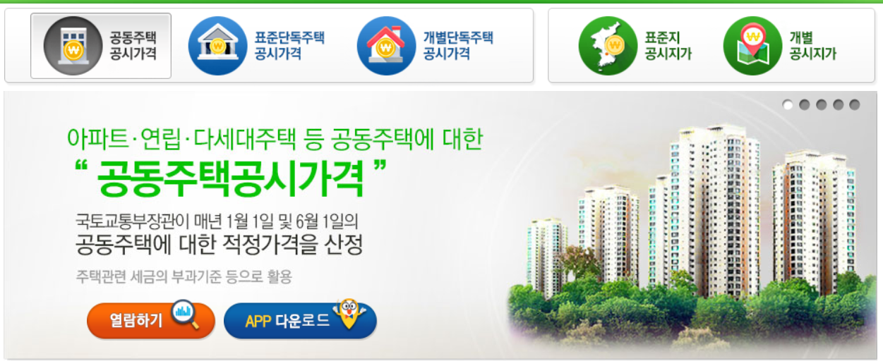 - 아파트, 단독주택, 연립주택, 토지 공시가격 조회 가능