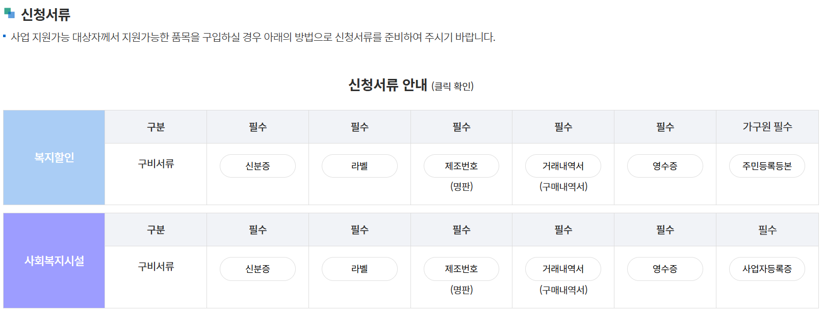 개인 구매 항목은 '복지할인'을 통해 신청을 계속 진행하실 수 있으며 기관에서 구매한 제품의 경우 '사회복지시설 대상' 으로 신청을 진행하셔야 합니다.