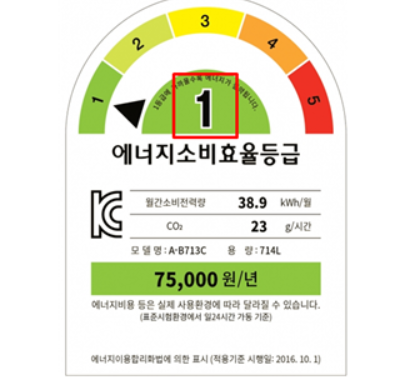 - 에너지소비효율등급 1등급 라벨 사진