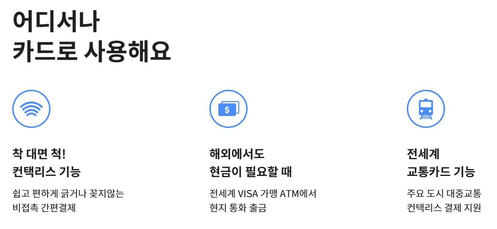 실물카드가 있다면 일본·싱가포르 등 일부 지역에서 교통카드 기능도 함께 사용 가능해요.