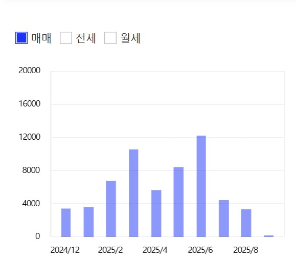 아래의 표에서 확인할 수 있듯이 6월 이후로 서울 아파트 매매 거래량이 급감하고 있는 모습입니다.